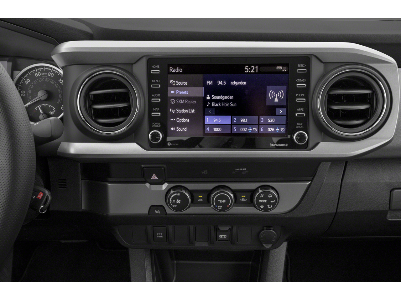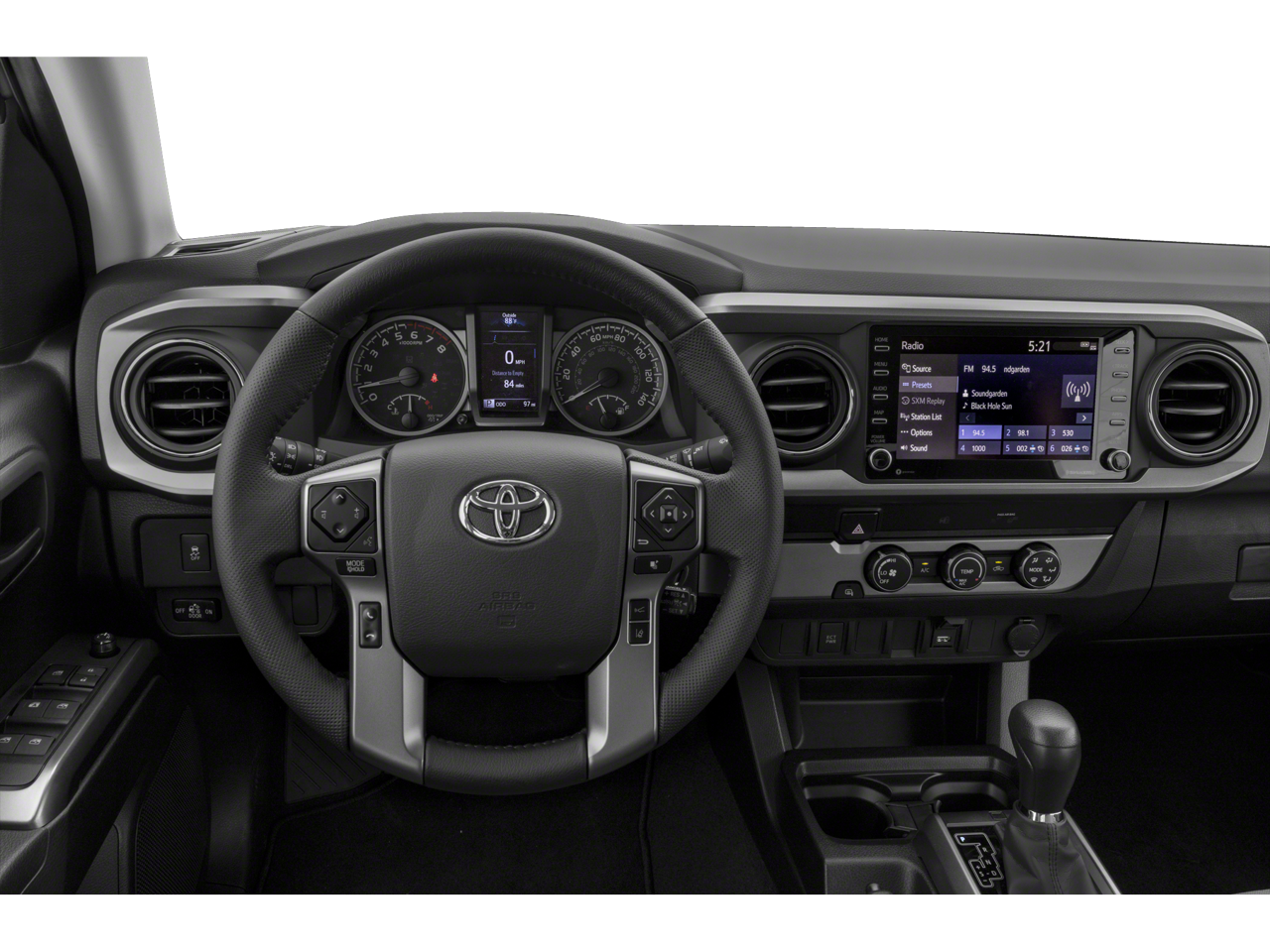 Elevate your driving experience with the Tacoma's impressive array of premium features. Enjoy the convenience of Automatic temperature control, 120V/400W Deck Mounted AC Power, and the peace of mind provided by the Emergency communication system: Safety Connect. The Tacoma's sleek exterior, complete with body-color bumpers and power door mirrors, exudes a bold and confident presence on the road.