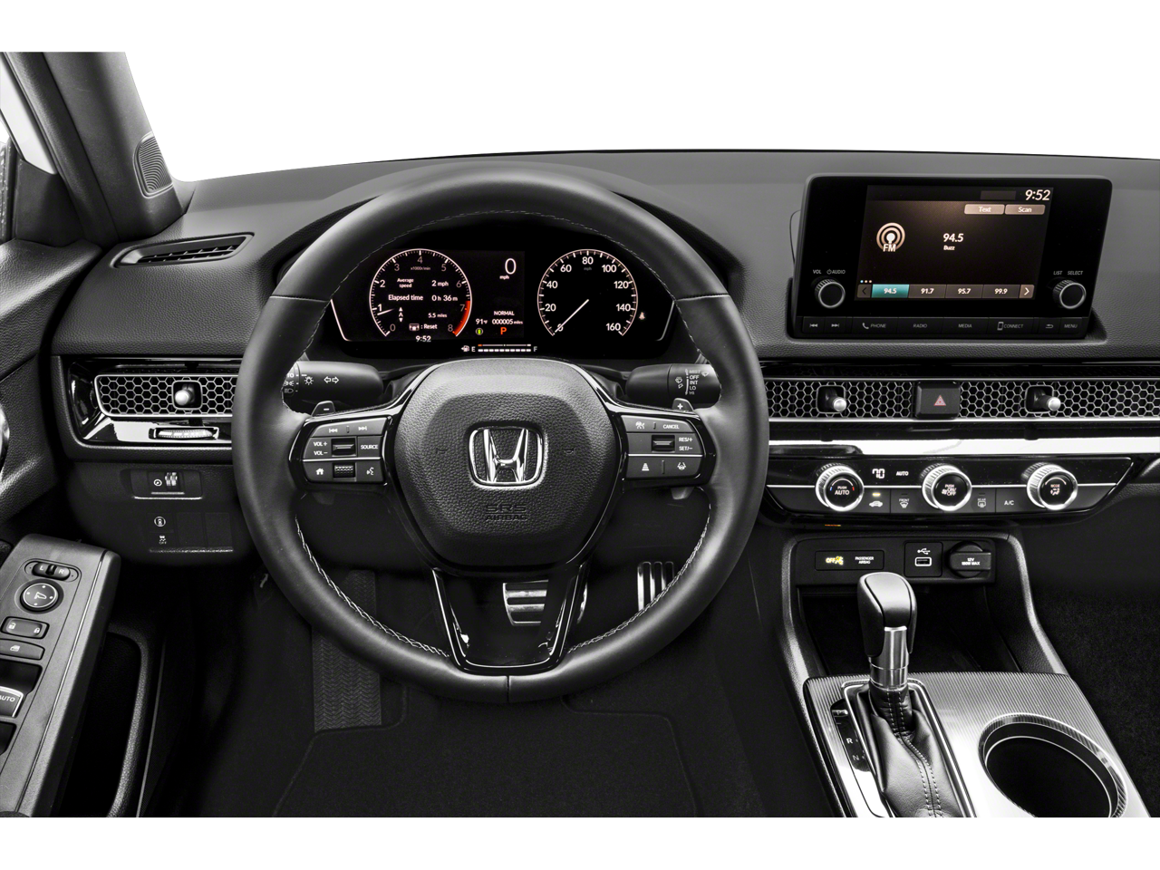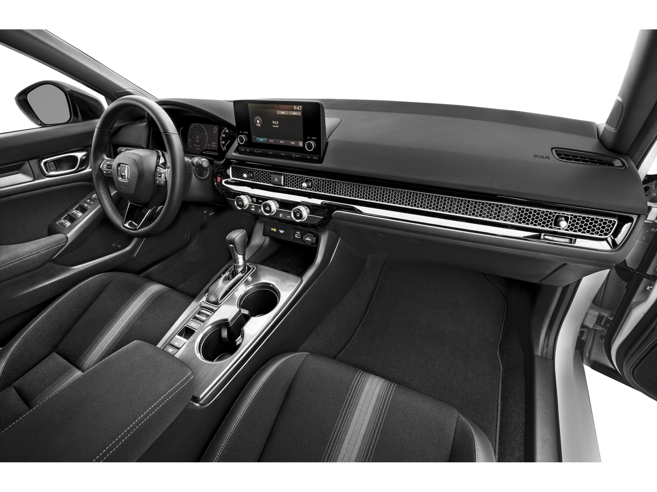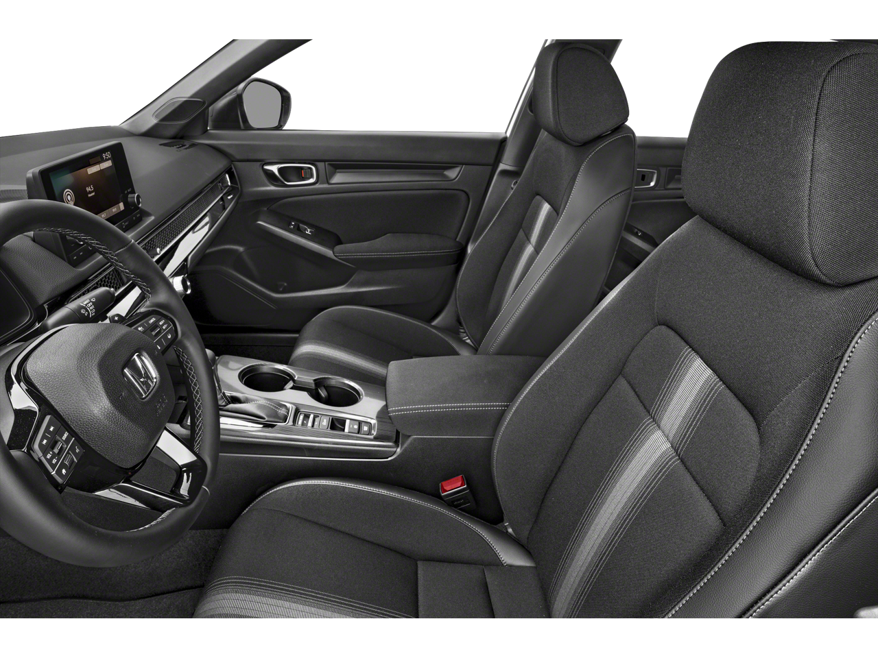 Step inside the cabin and you'll be greeted by the Civic Sport's thoughtfully designed interior, featuring Cloth/Leatherette Seating Surfaces, a Leather Shift Knob, and a Leather steering wheel. The spacious and well-appointed cabin provides ample comfort and convenience for you and your passengers.