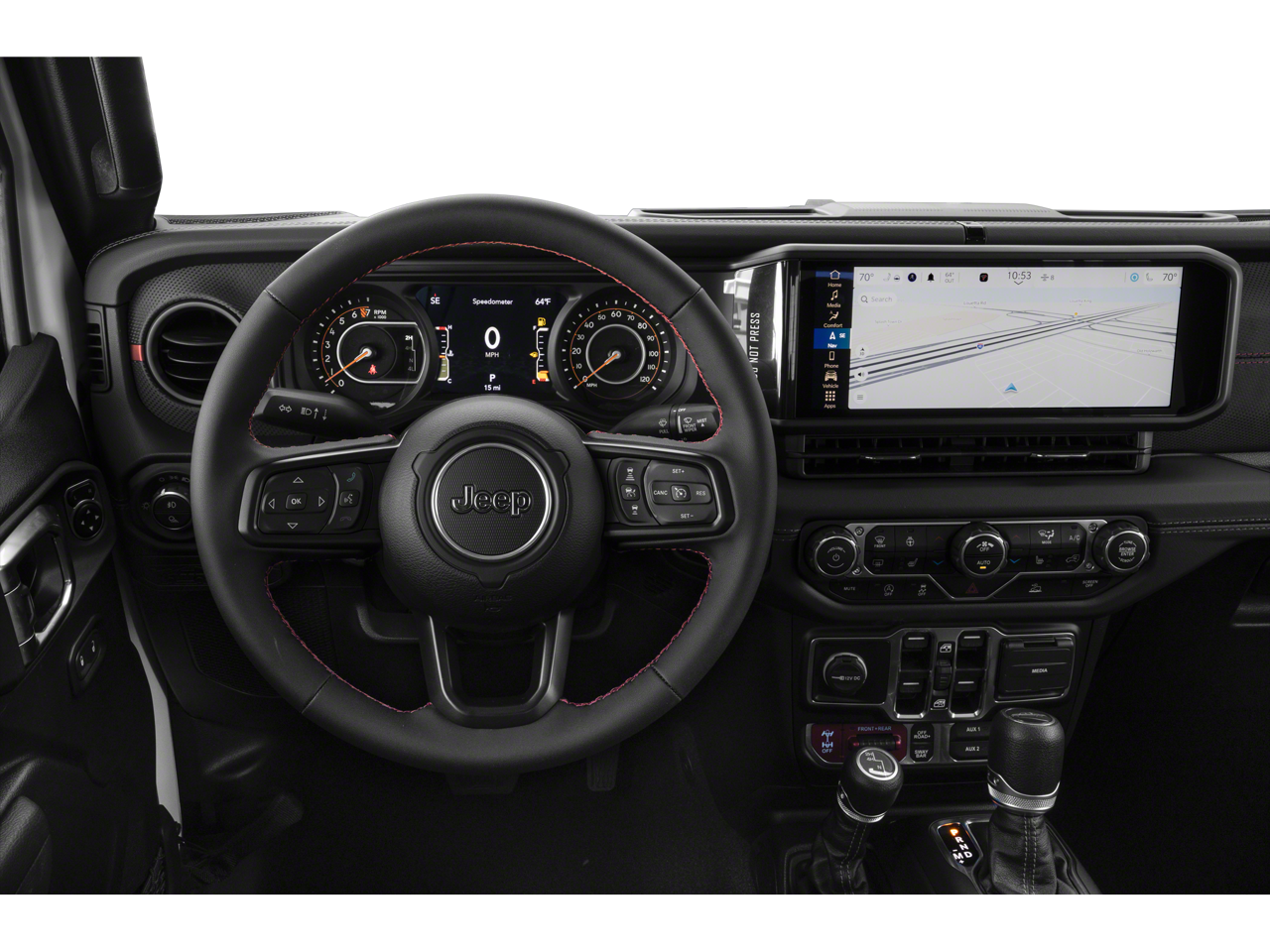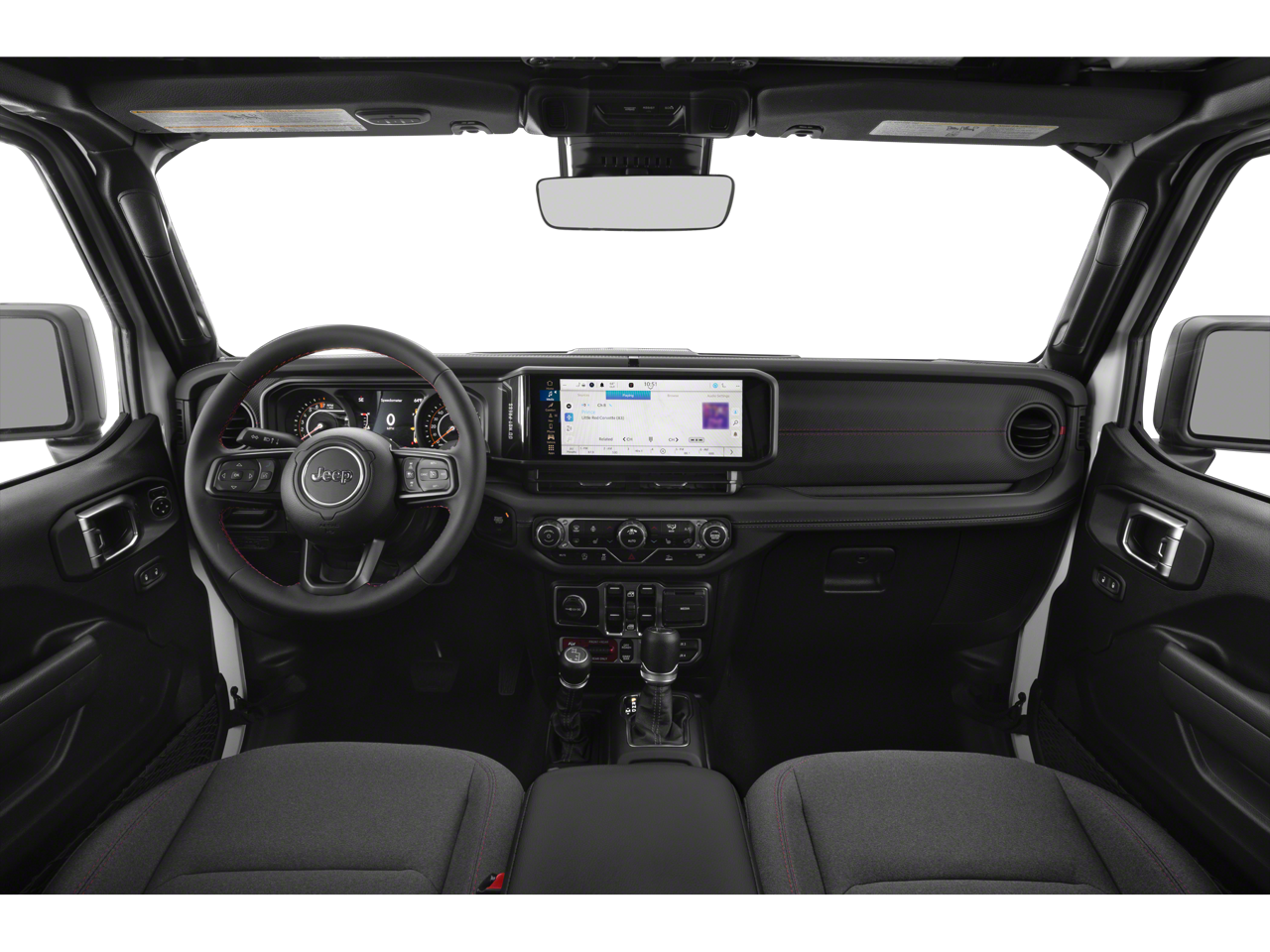 The Gladiator Rubicon's bold, distinctive design is enhanced by its Granite Crystal Metallic Clearcoat exterior, complemented by a Black 3-Piece Hard Top that provides versatility and open-air freedom. Step inside and experience the premium Uconnect 5 infotainment system with a 12.3 touchscreen display, Apple CarPlay, and Android Auto integration.